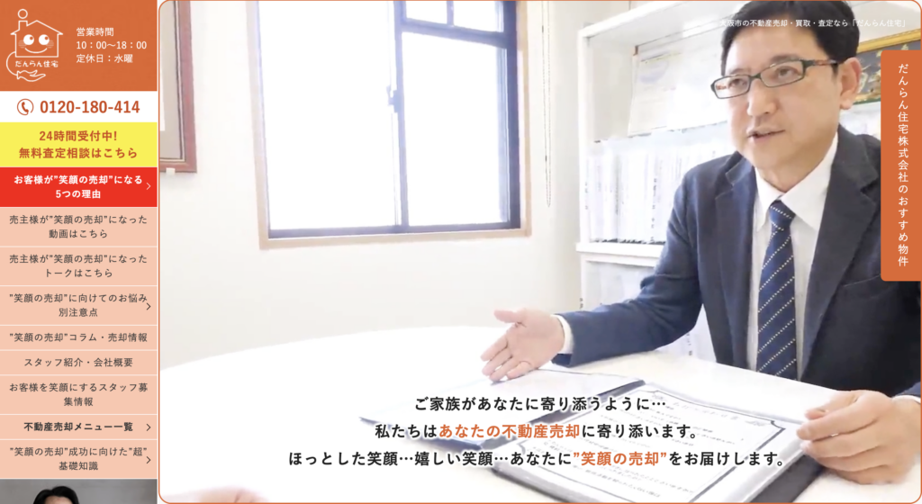 だんらん住宅株式会社は、大阪市を中心に不動産売却・買取に特化したサービスを提供している不動産会社です。売主の利益を最優先に考えた提案を強みとしており、「高く・早く売る」ための独自の販売戦略に定評があります。